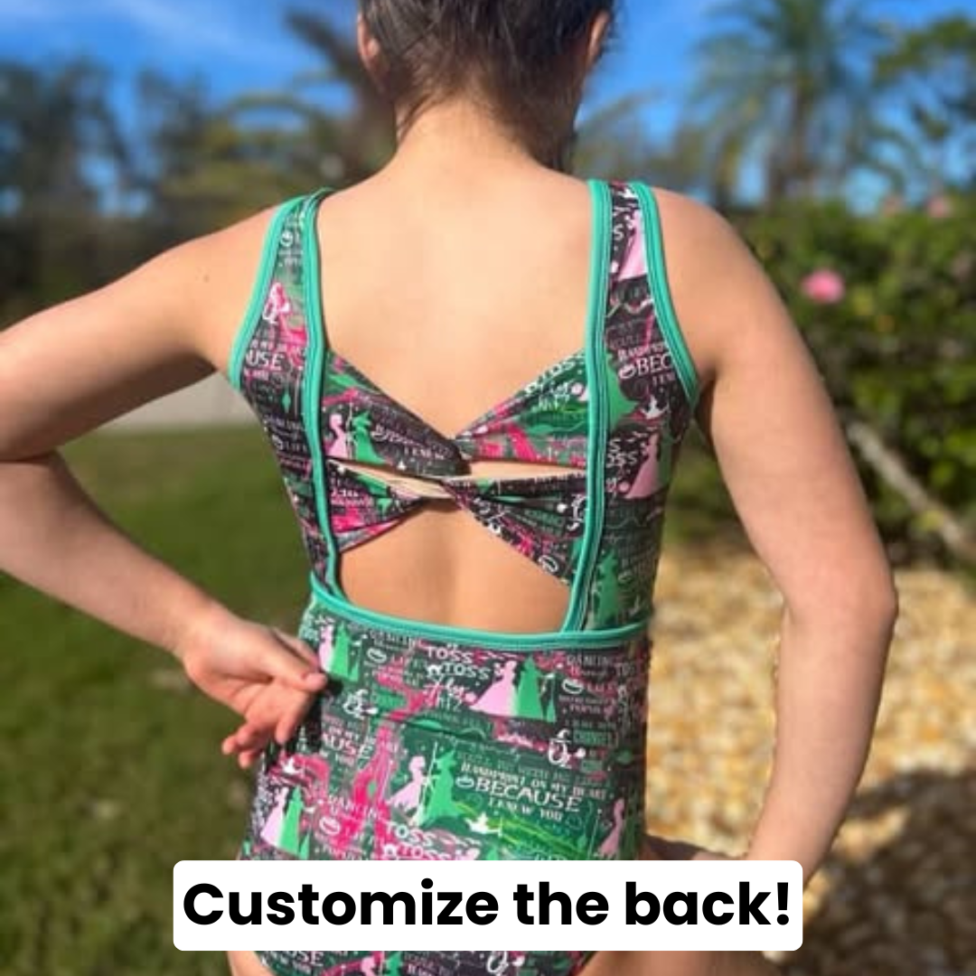 Each leotard comes with the option to choose your own back! Look through the back options in the images, choose your favorite, and insert the number in the "Custom Back #" box below.