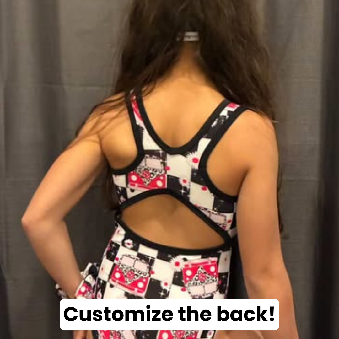 Each leotard comes with the option to choose your own back! Look through the back options in the images, choose your favorite, and insert the number in the "Custom Back #" box below.