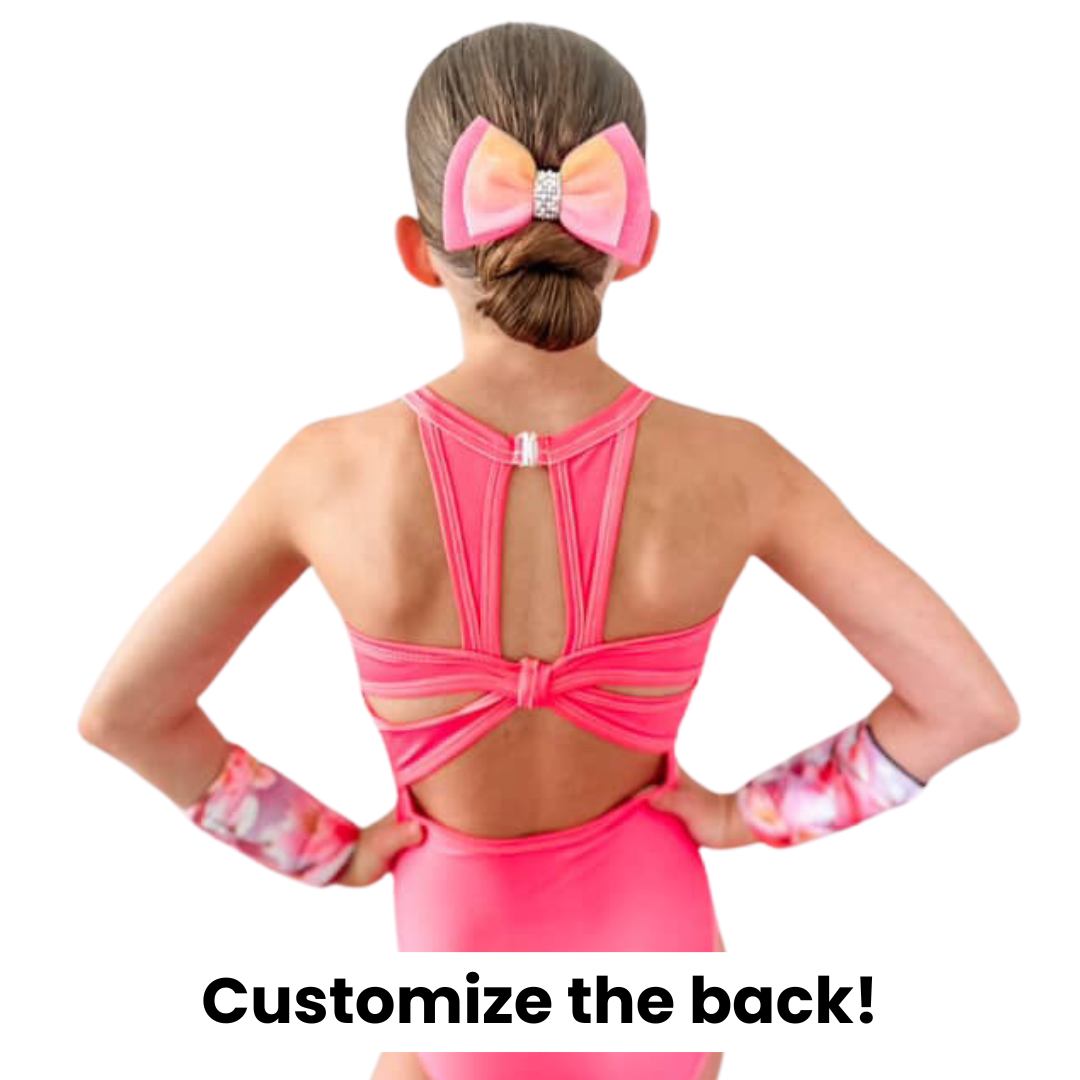 Each leotard comes with the option to choose your own back! Look through the back options in the images, choose your favorite, and insert the number in the "Custom Back #" box below.