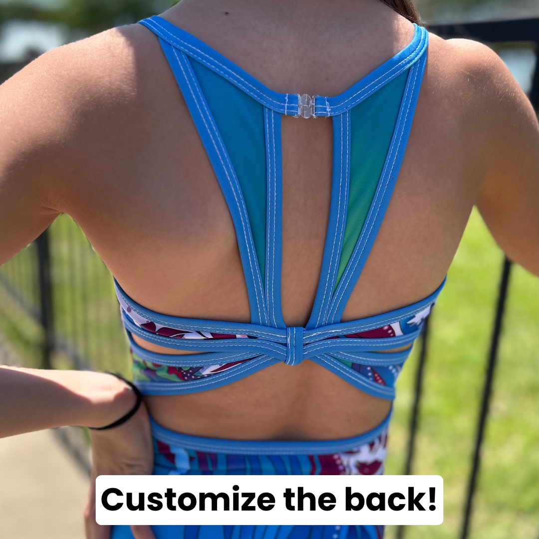 Each leotard comes with the option to choose your own back! Look through the back options in the images, choose your favorite, and insert the number in the "Custom Back #" box below.