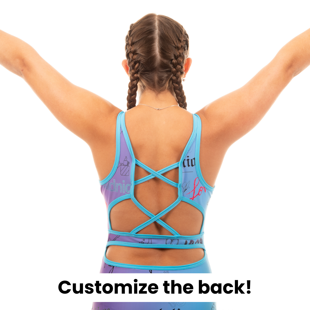 Each leotard comes with the option to choose your own back! Look through the back options in the images, choose your favorite, and insert the number in the "Custom Back #" box below.