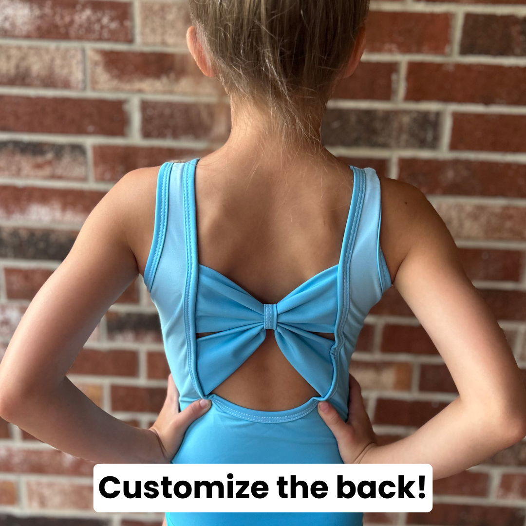 Each leotard comes with the option to choose your own back! Look through the back options in the images, choose your favorite, and insert the number in the "Custom Back #" box below.