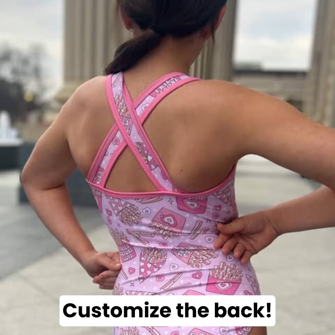 Each leotard comes with the option to choose your own back! Look through the back options in the images, choose your favorite, and insert the number in the "Custom Back #" box below.