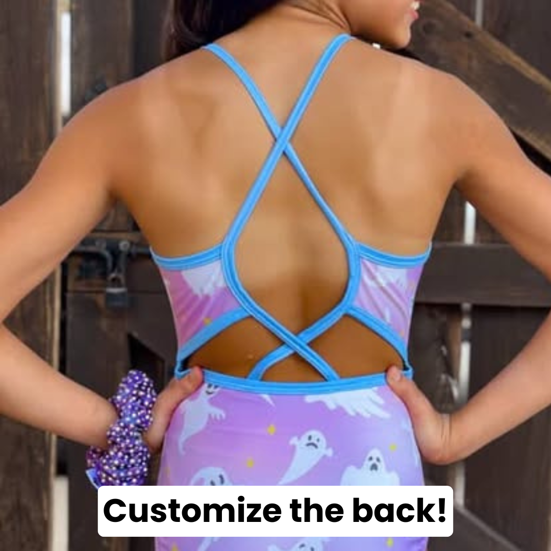 Each leotard comes with the option to choose your own back! Look through the back options in the images, choose your favorite, and insert the number in the "Custom Back #" box below.