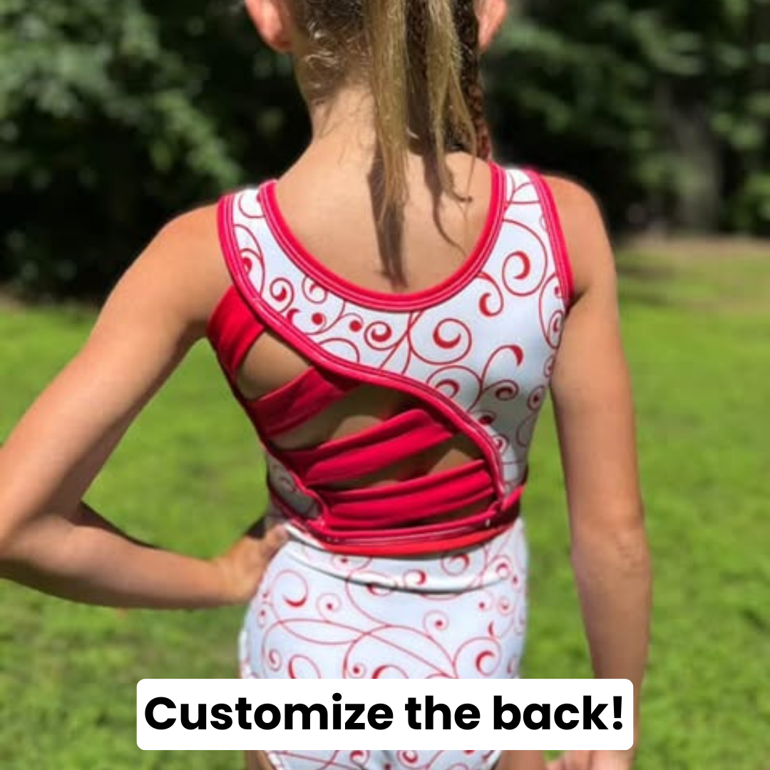 Each leotard comes with the option to choose your own back! Look through the back options in the images, choose your favorite, and insert the number in the "Custom Back #" box below.