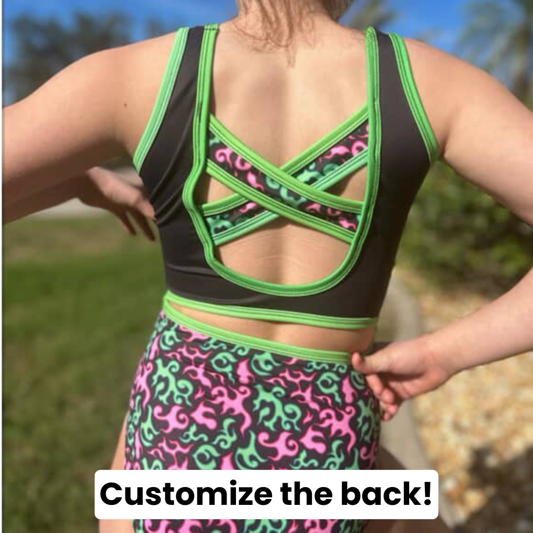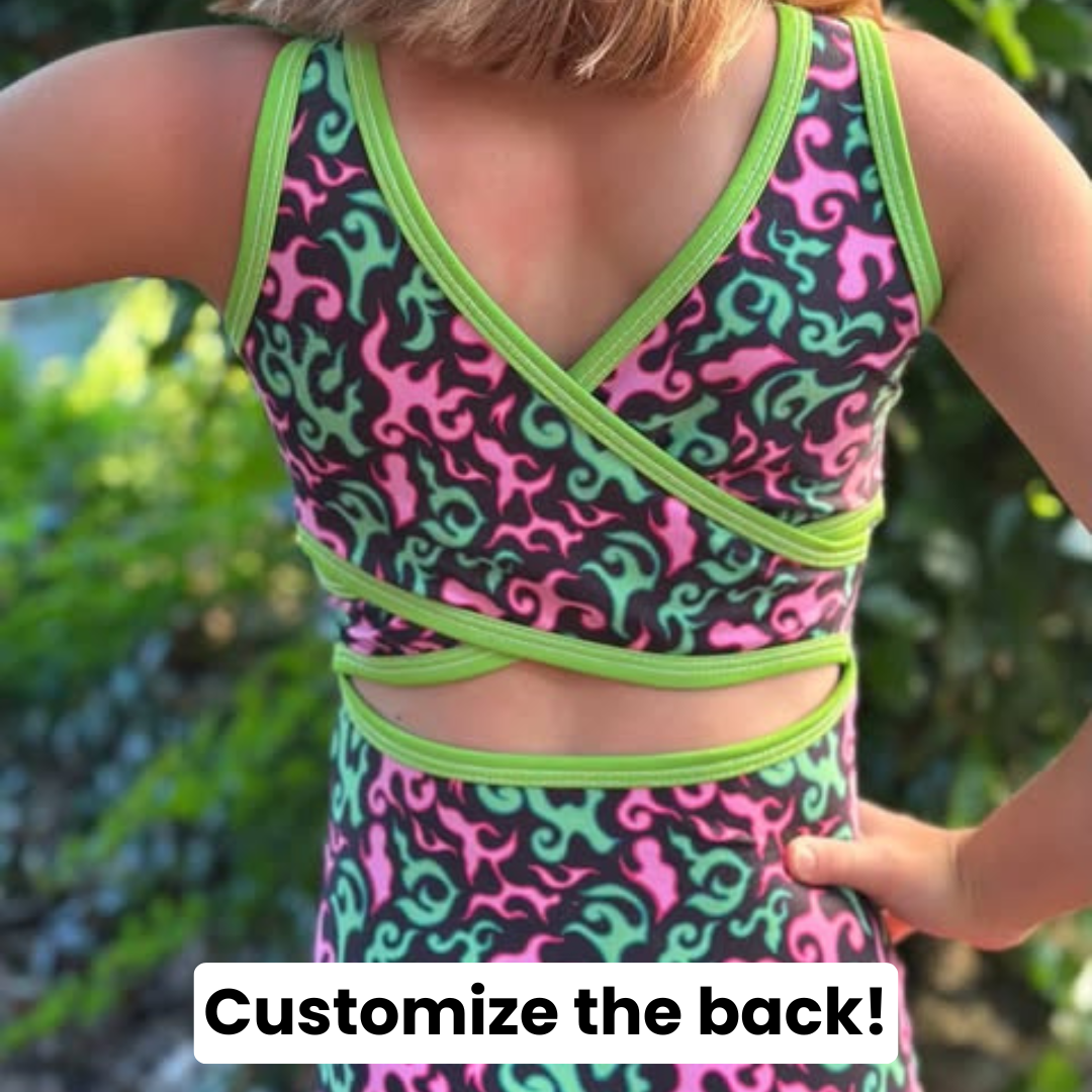 Each leotard comes with the option to choose your own back! Look through the back options in the images, choose your favorite, and insert the number in the "Custom Back #" box below.