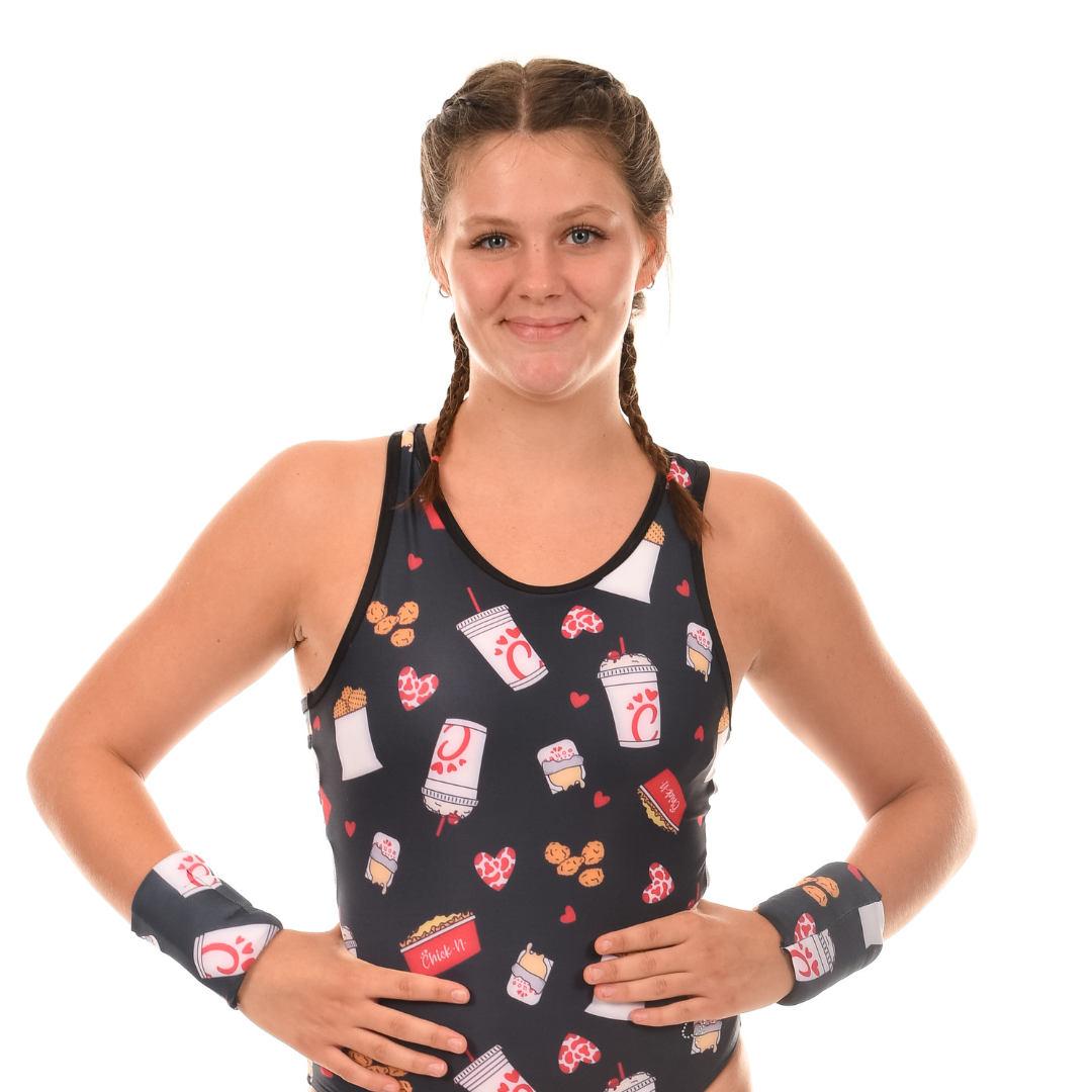 We can create wristbands to match any of our leotards! Scroll through the images to see some examples.