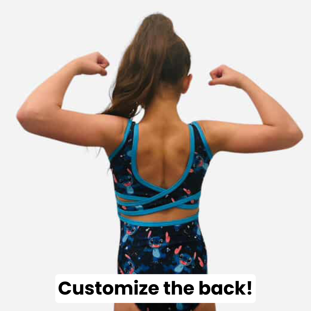 Each leotard comes with the option to choose your own back! Look through the back options in the images, choose your favorite, and insert the number in the "Custom Back #" box below.