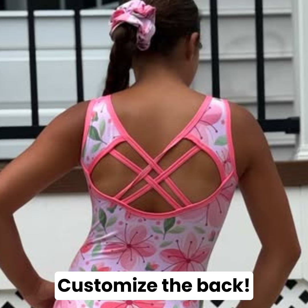 Each leotard comes with the option to choose your own back! Look through the back options in the images, choose your favorite, and insert the number in the "Custom Back #" box below.