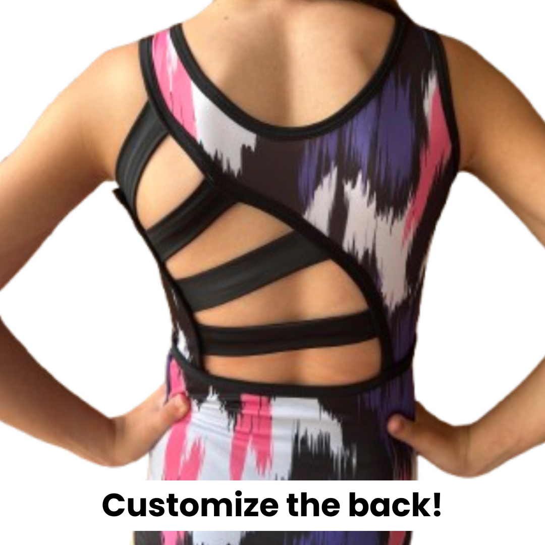 Each leotard comes with the option to choose your own back! Look through the back options in the images, choose your favorite, and insert the number in the "Custom Back #" box below.