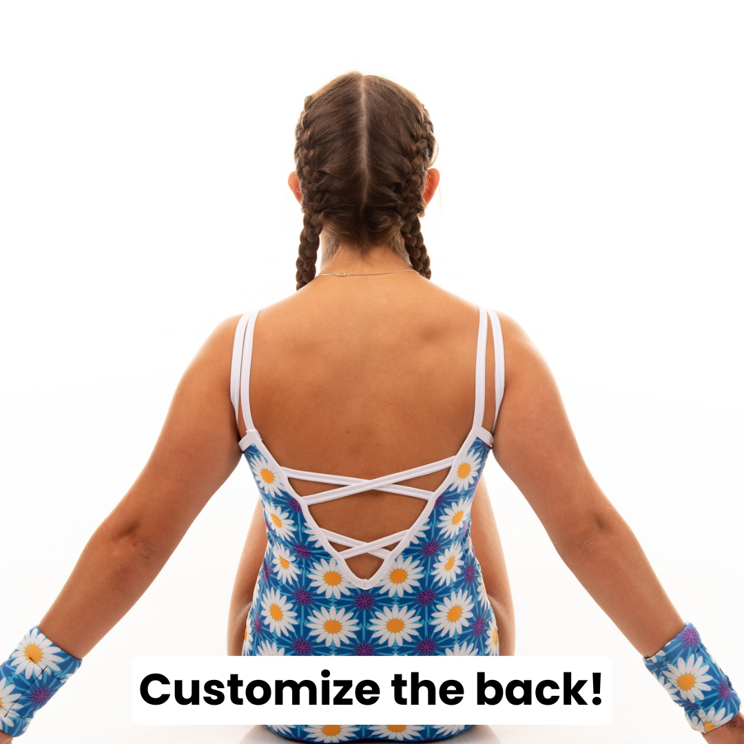 Each leotard comes with the option to choose your own back! Look through the back options in the images, choose your favorite, and insert the number in the "Custom Back #" box below.