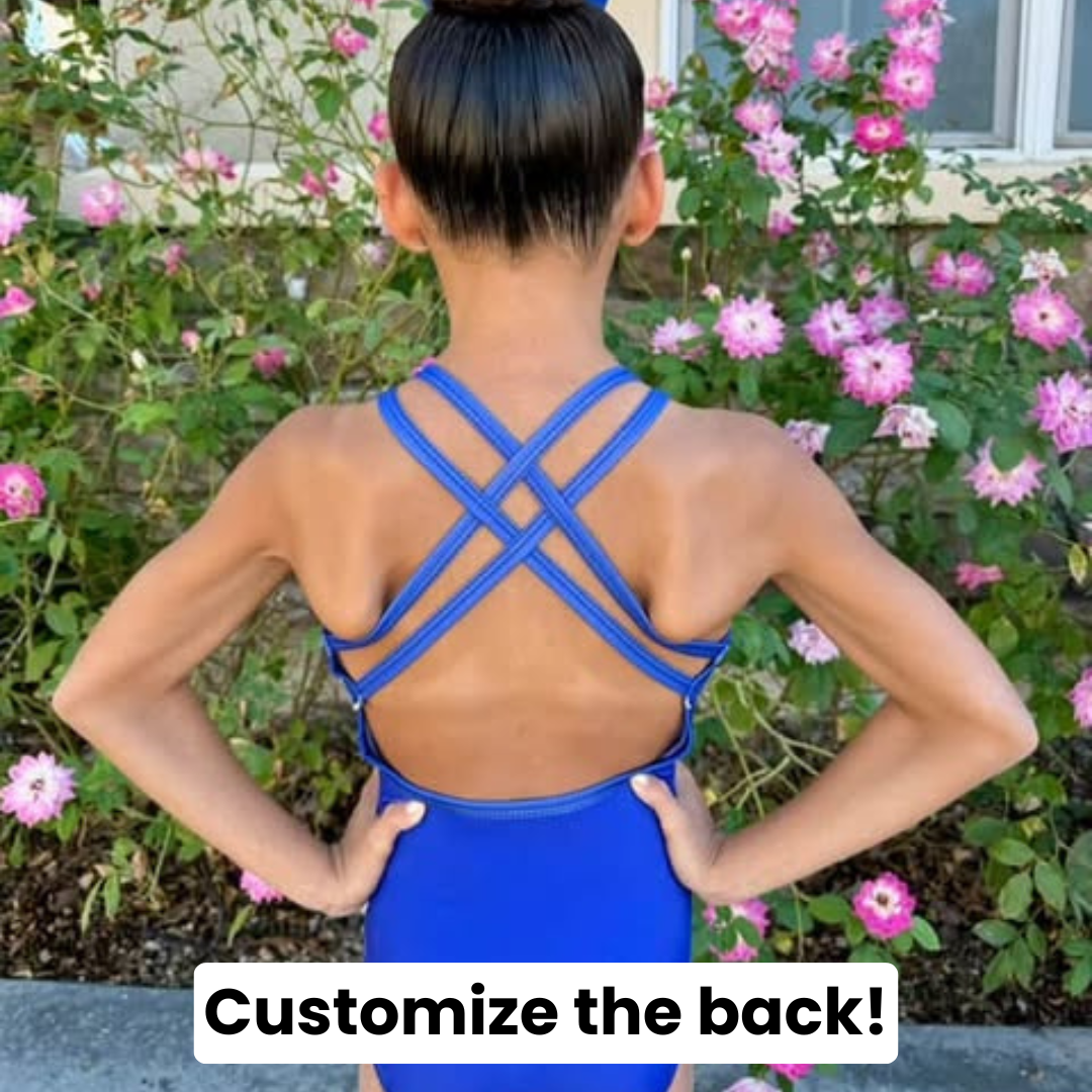 Each leotard comes with the option to choose your own back! Look through the back options in the images, choose your favorite, and insert the number in the "Custom Back #" box below.