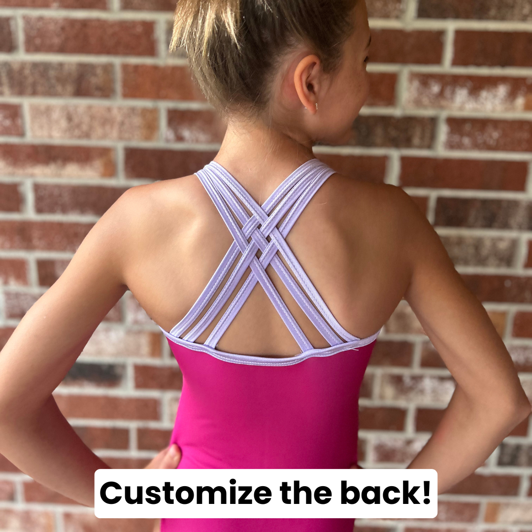 Each leotard comes with the option to choose your own back! Look through the back options in the images, choose your favorite, and insert the number in the "Custom Back #" box below.