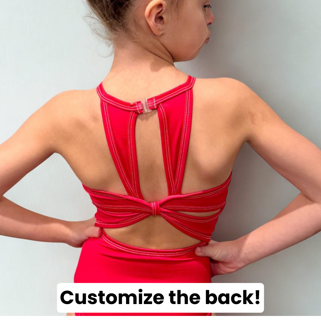 Each leotard comes with the option to choose your own back! Look through the back options in the images, choose your favorite, and insert the number in the "Custom Back #" box below.